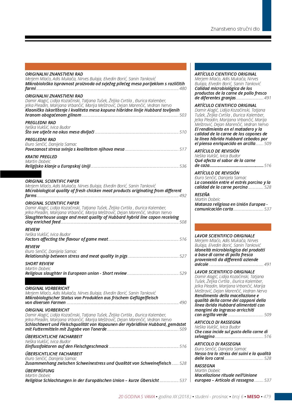 MESO : The first Croatian meat journal , Vol. 20. No. 6., 2018.